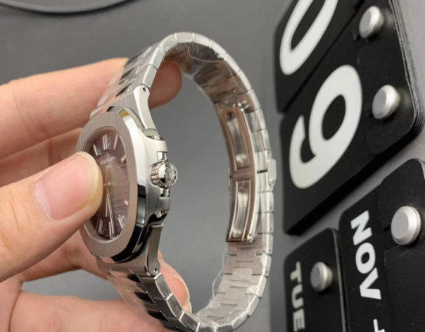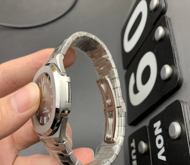 ノーチラスといえば一体型ブレスレット。このモデルも本物と同じ構造で、リンクのつなぎ目が滑らか。装着した瞬間に「自分の一部になった」ようなフィット感です。 ステンレススチールの重厚感がありながら、重すぎず、長時間つけても疲れません。クラスプは堅牢で、簡単に着脱可能。ビジネスシーンでもカジュアルでも、どんな服装も一気に格上げしてくれます。