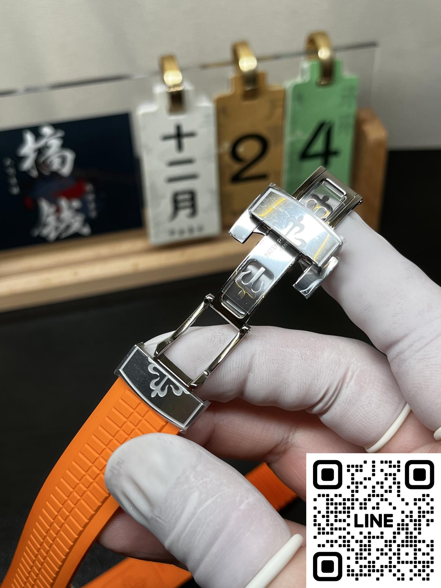 人気のパテック フィリップ アクアノート 5167/1A。エンボス加工のブラックダイヤルと鮮やかなオレンジのラバーBストラップが特徴です。スポーティなエレガンスと贅沢な職人技が完璧に融合しています。3K工場はコストを惜しまず、本物買って1:1製造します。