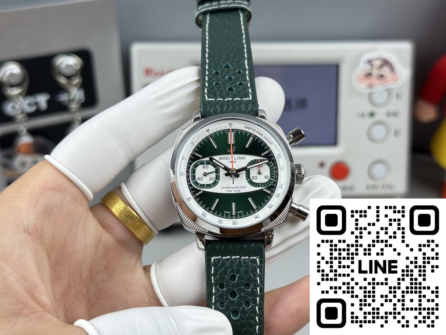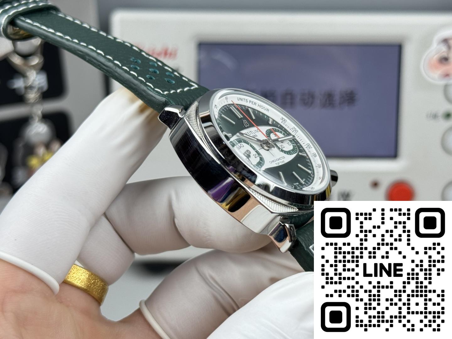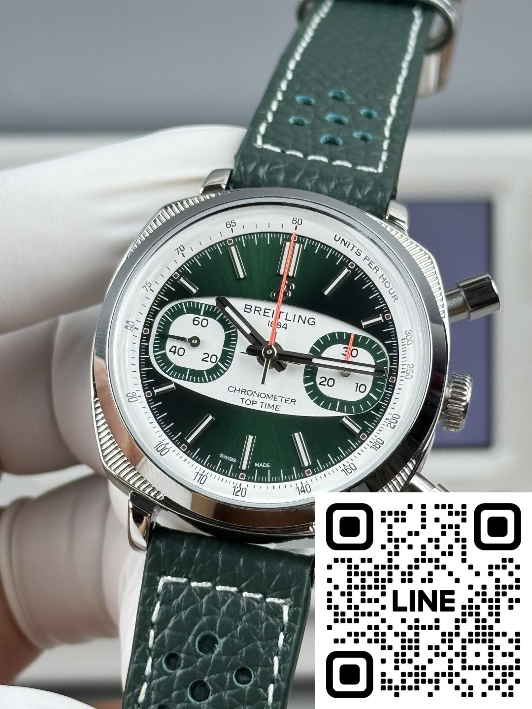 変革期を迎えた1960年代に発表された、ウィリー・ブライトリングの型破りなレーシング・クロノグラフ・ラインは、当時の自由奔放な雰囲気を鮮やかに捉えています。そして今日、新しいトップタイム・コレクションは、アドレナリンが溢れるエネルギーを表現し、モダンレトロなデザインと最先端のパフォーマンスを融合させています。トップタイム・レーシングは、1960年代のトップタイムを代表する印象的なデザインを受け継いでいます。クッション型のケース、大胆なタキメータースケール、そして特徴的な「スクエアクル」サブダイアルは、レースコースのハイスピードと一瞬の判断を想起させます。ダイアルの中心には、トップタイムのアーカイブからそのまま引用された、クラシックカーのダッシュボードにインスパイアされた楕円形の「サーフボード」モチーフがあしらわれています。