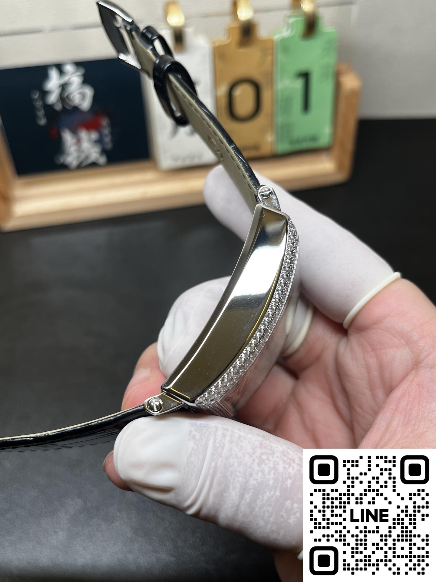 長方形のダブルブリッジサファイアガラスは製造が難しく、工程も複雑です。裏蓋の研磨は極めて精巧で、曲面ケースにぴったりと密着させる必要があり、真贋を見分ける重要なディテールであると同時に、工場の時計製造技術を試す重要な要素です。ムーブメントには、純正と全く同じスイス製Rondaクォーツムーブメントを採用しています。