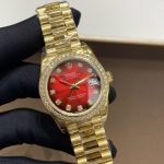 Superman Studioとの共同開発による美学的な完成度が融合した特別な1本です。赤から黒へのグラデーションが美しい漸層レッドダイヤルは、サンレイ仕上げによって光の角度で多彩な表情を見せます。ダイヤモンドインデックスは上品な輝きを添え、日常からフォーマルまで幅広く活躍。