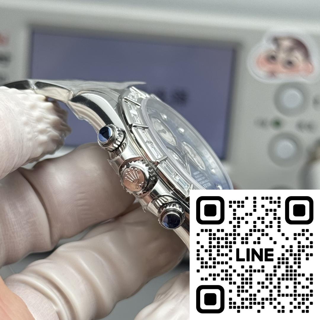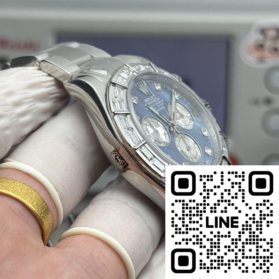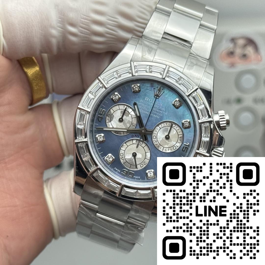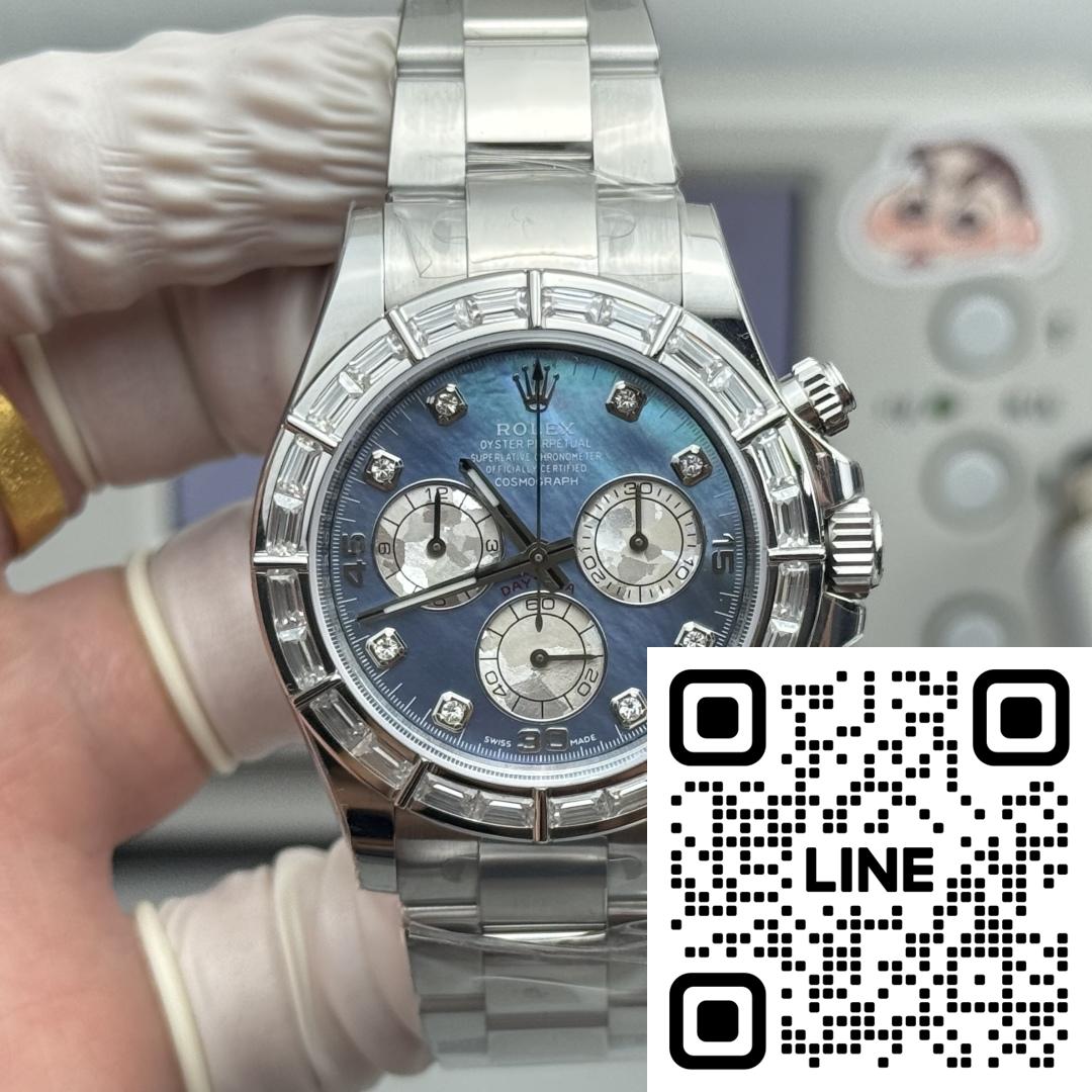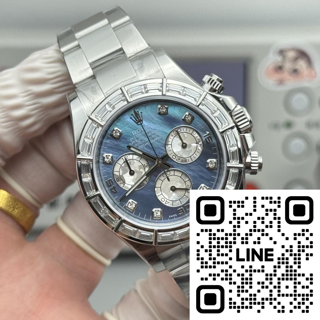 この時計はブルーマザオブパールダイヤモンド入り文字盤を備え、サブダイヤルはマザオブパール生地で、メインダイヤルのブルー色とコントラストな印象を際立たせます。竹節式のダイヤモンド入ベゼルもこの時計の不可欠な特徴です。ダイヤモンドリはモアサナイトで、本物のダイヤモンドに劣らない輝きを光ります。通常の文字盤に不満足し、よりユニックなデイトナを手に入れたい愛好家にとって、このレアアイテムはまるで最高の選択肢です。
