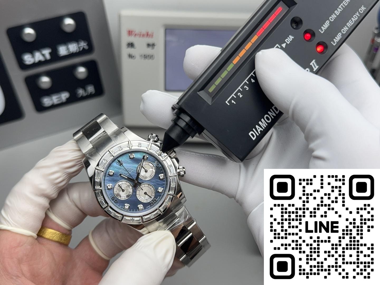 PPM工場 ロレックス コスモグラフ・デイトナ 竹節式ダイヤモンド入りベゼル ブルーマザーオブパールダイヤモンド入り文字盤 4801ムーブメント搭載