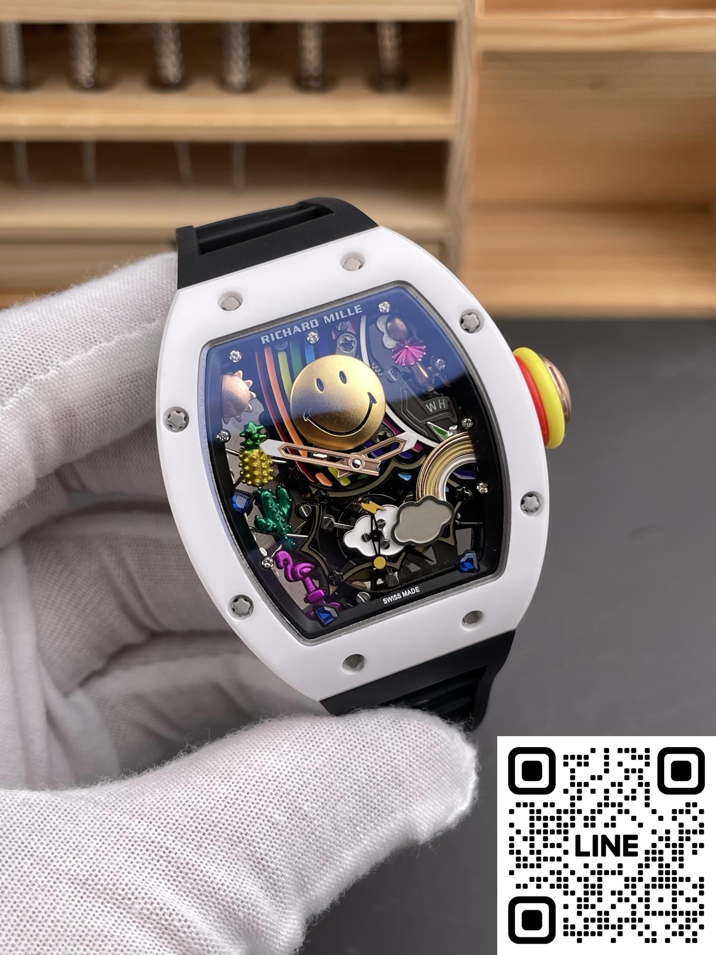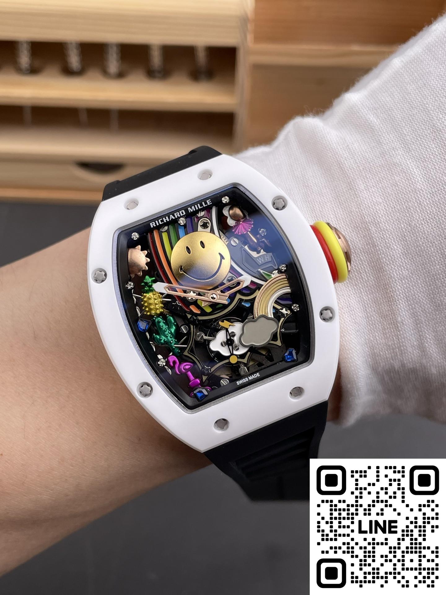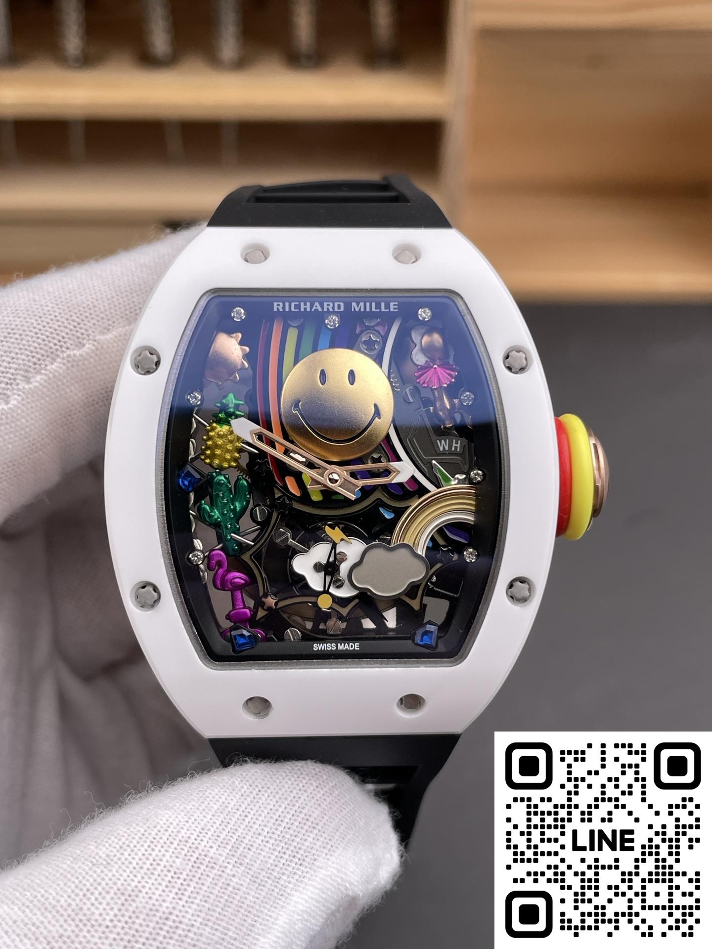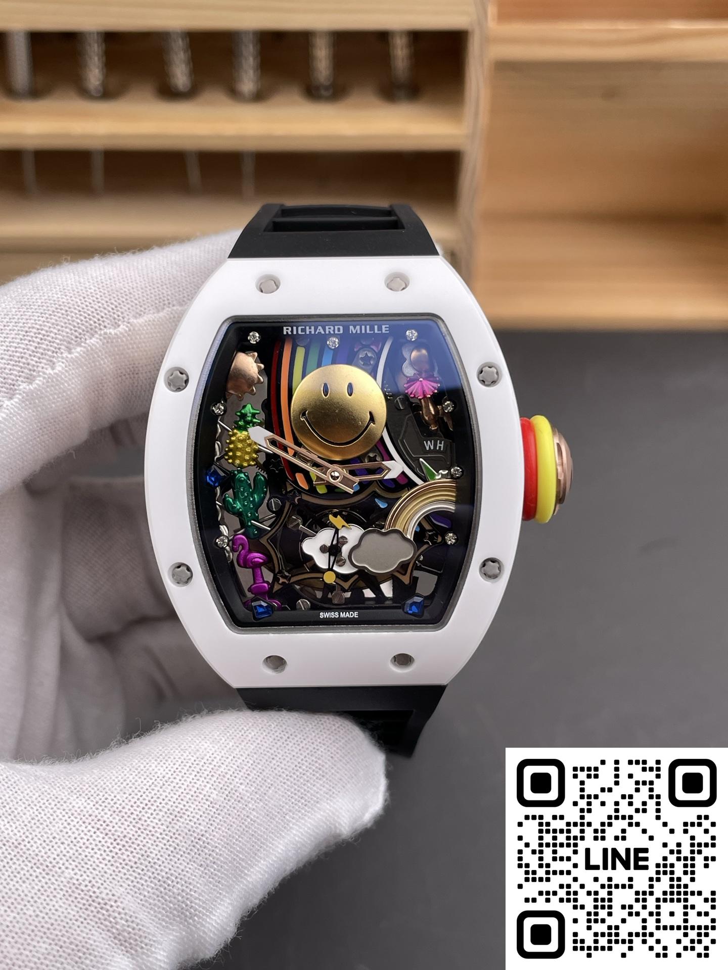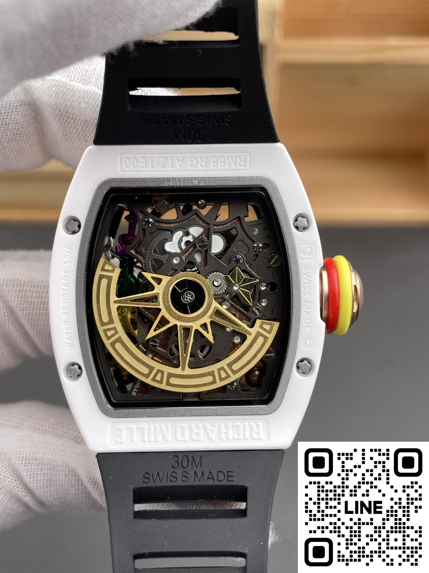 RM工場 リシャール・ミルRM88 Smiley ホワイトセラミックとレッドゴールド ブラックラバーストラップ 一体式 CRMT7ムーブメント スーパーコピー