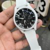 「パイロット・ウォッチ・クロノグラフ・トップガン “レイク・タホ”」のホワイトセラミック製ケースは、米海軍の制服と、タホ湖の美しい冬景色にインスピレーションを得ています。神秘的な輝きを帯びた落ち着いたホワイトのセラミックカラー“レイク・タホ”は、「サービスドレス・ホワイト」と呼ばれる米海軍の制服と、シエラネバダ山脈最大の湖を囲み、冬には雪で覆われる山頂の景色からインスピレーションを得ています。「パイロット・ウォッチ・クロノグラフ・トップガン “レイク・タホ”」は、目を引くホワイトセラミック製ケースに、ブラックの文字盤と針、ホワイトのプリントと夜光塗料が組み合わせられています。トップガンのロゴがエングレーヴィングされたケースバックはチタニウム製で、プッシュボタンおよびリューズはステンレススティール製です。伝統的なコラムホイール・デザインを採用したこのクロノグラフは、3時位置に日付・曜日表示も備えています。ムーブメントは、軟鉄製インナーケースによって磁場の影響から保護されています。この「トップガン」クロノグラフには、“レイク・タホ”ケースと美しく調和する特徴的なエンボス加工を施したホワイトのラバー・ストラップが付属します。