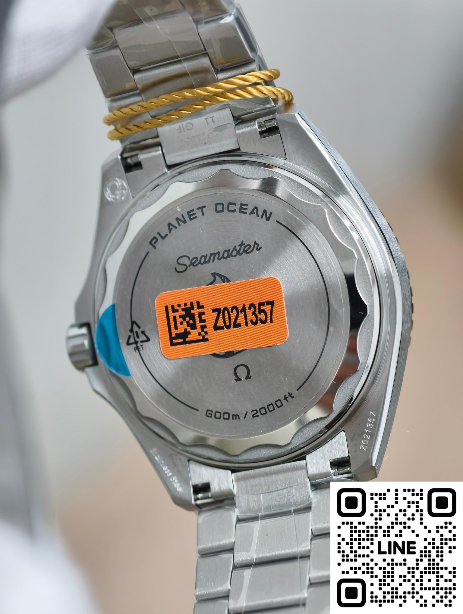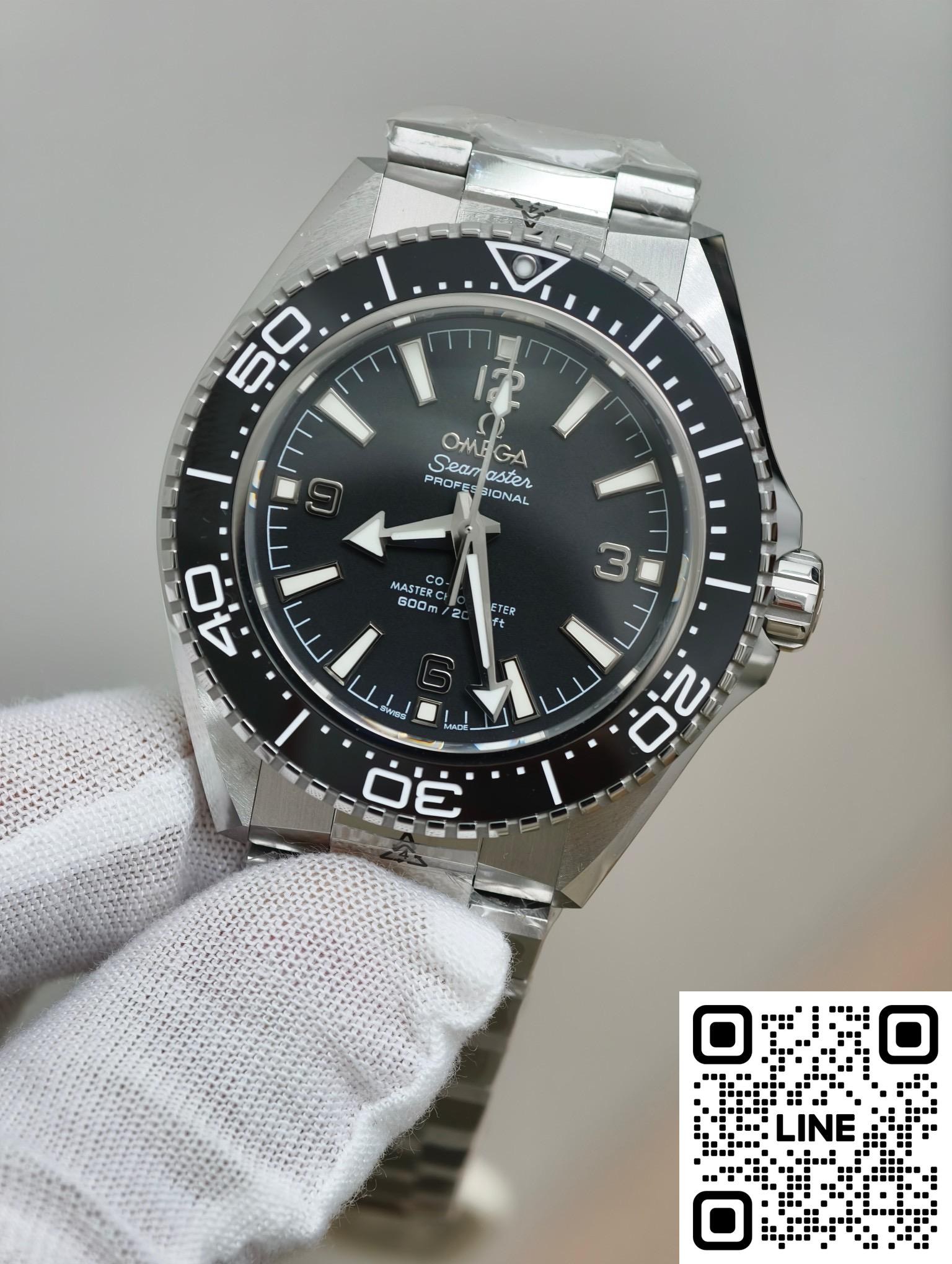 オメガがもつダイバーズウォッチの歴史にオマージュを捧げる、「シーマスター プラネットオーシャン」。探検、革新、そしてスタイルにコミットするオメガの姿勢を体現します。40mmのこのモデルは、ポリッシュ&ブラッシュ仕上げのステンレススティール製ケースに、ホワイトのエナメルでダイビングスケールを施したポリッシュ仕上げのブラックセラミック製ベゼルリングと、ポリッシュ仕上げのグレード5チタン製インナーリングを備えます。マット仕上げのブラックダイアルには、ホワイトのスーパールミノヴァを塗布したロジウム仕上げの針とインデックスをレイアウト。ホワイトの転写文字と、4つのロジウム仕上げのアラビア数字が配されています。