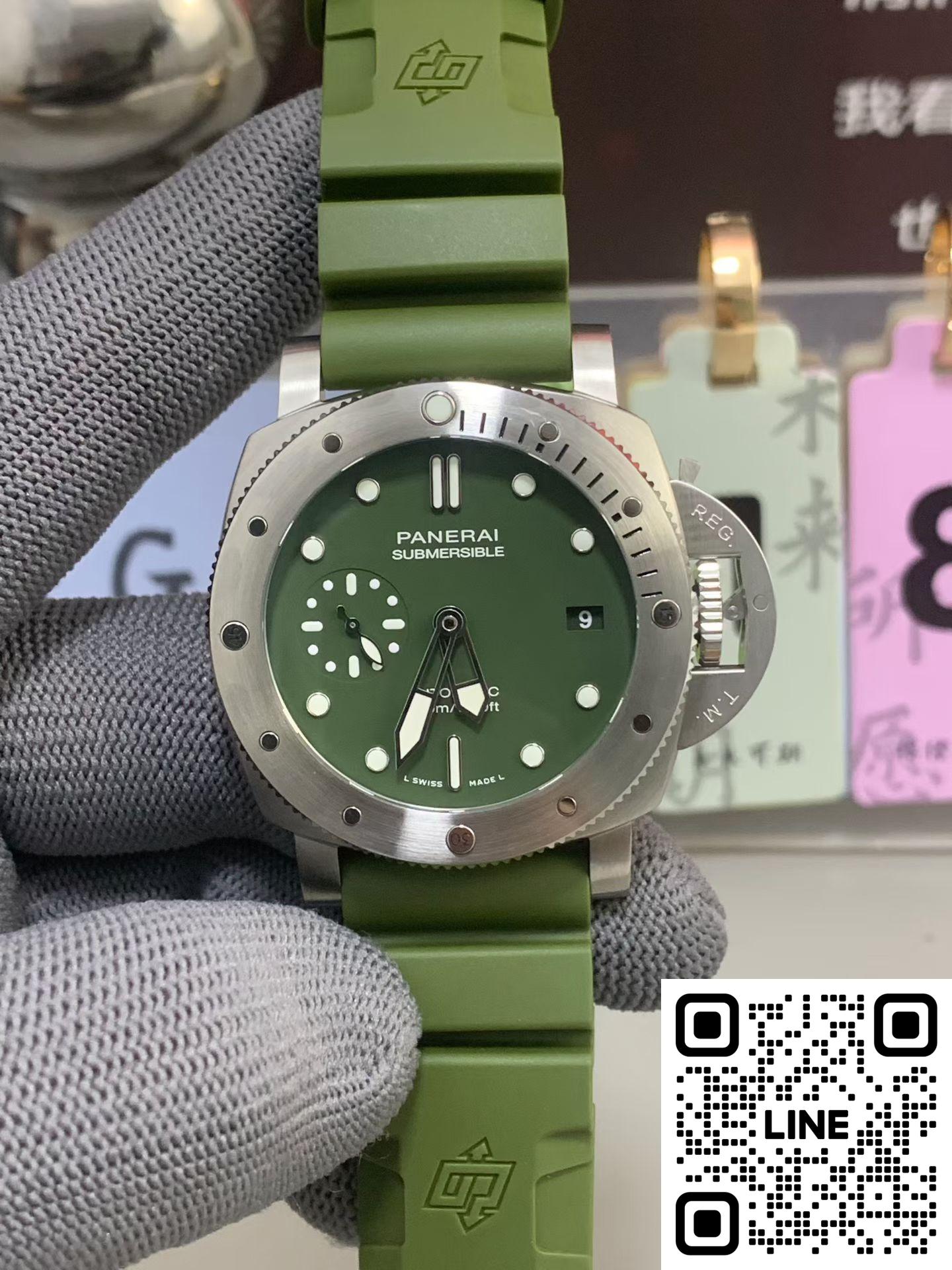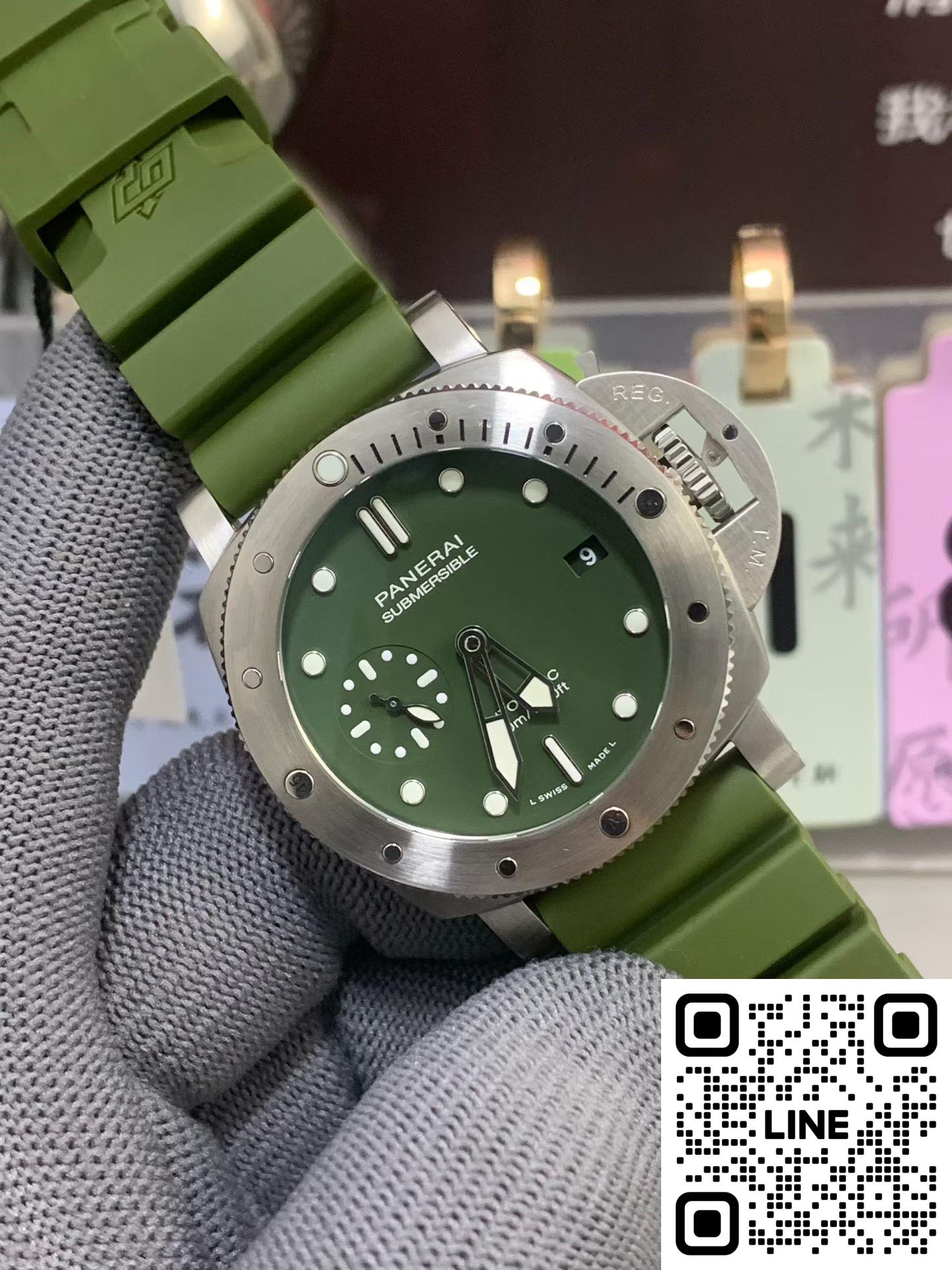 VS工場 パネライ サブマーシブル PAM1055 42mm グリーン文字盤 ステンレススチール グリーンストラップ P.900自動巻ムーブメント スーパーコピー