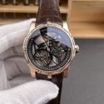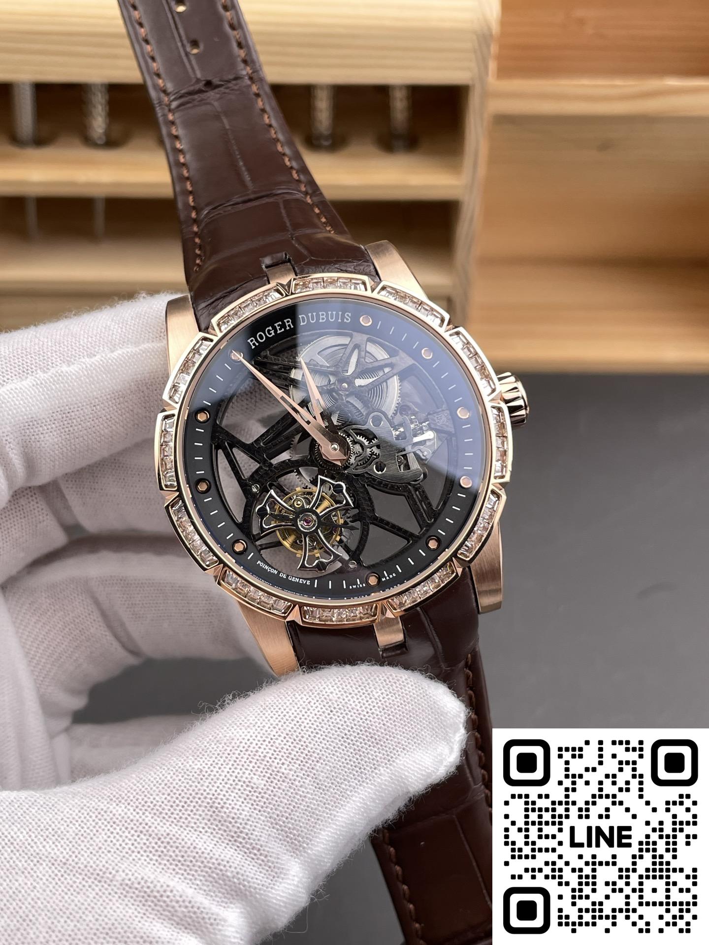 30m防水設計を誇るYSファクトリー正規品のロジェ・デュブイ エクスカリバー RDDBEXは、普段使いにも特別な機会にも最適なパートナーであり、あなたの個性とスタイルを際立たせます。この時計を選べば、どんな外出も華やかな装いになるでしょう。手巻きムーブメントを搭載し、直径45mmのケースは、力強さと優雅さを兼ね備えています。スケルトンダイアルからは、精緻な機構を鑑賞でき、卓越した職人技が光ります。704Lステンレススチールケースは、堅牢で耐久性に優れているだけでなく、上品な輝きを放ちます。レザーストラップとの組み合わせで、快適さとスタイルを兼ね備えています。