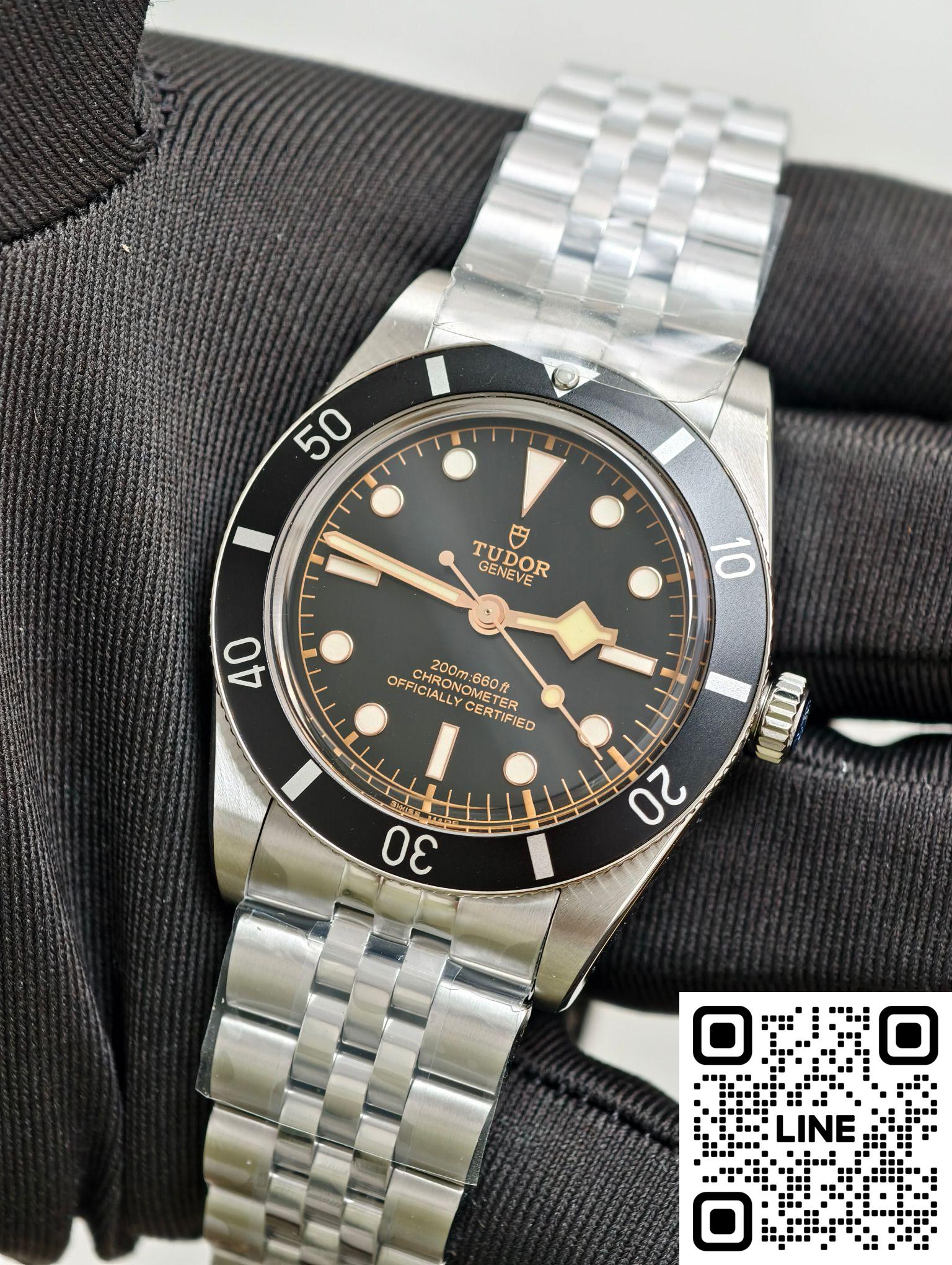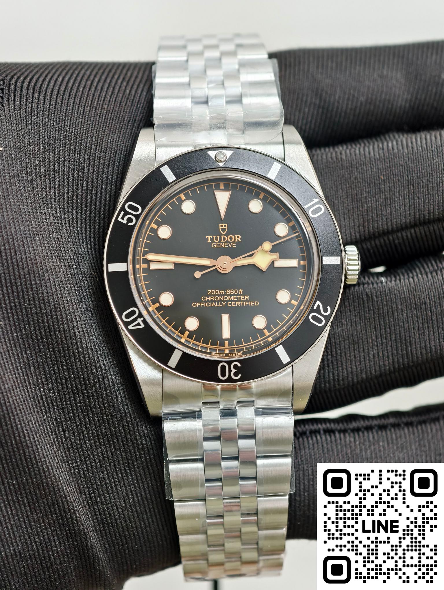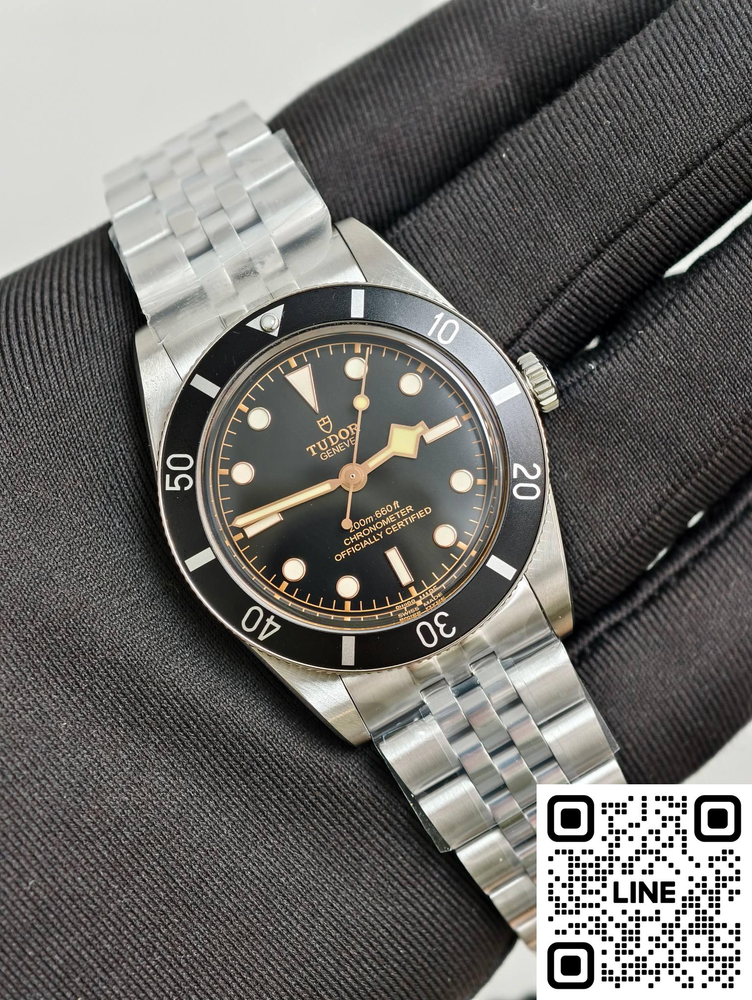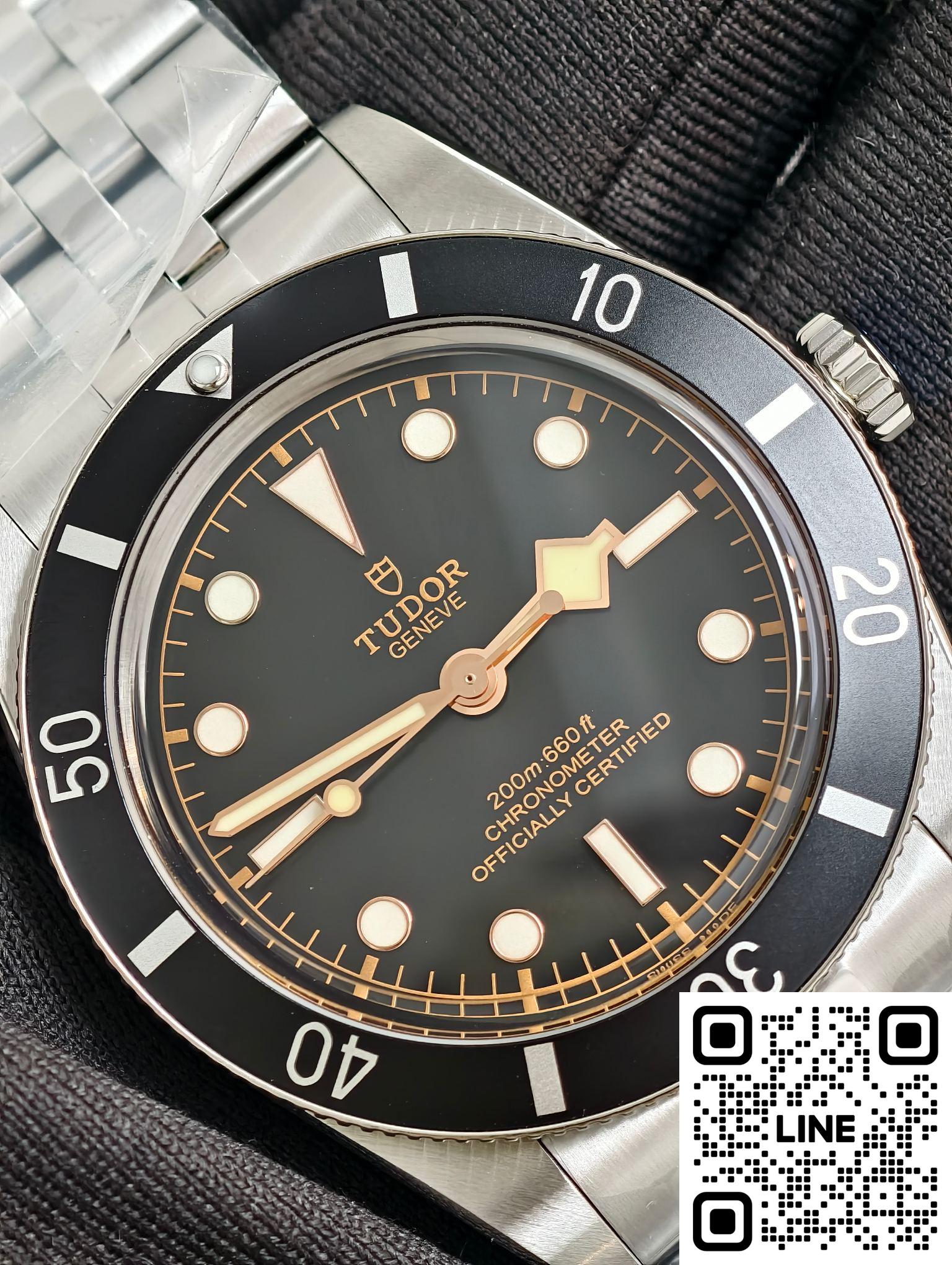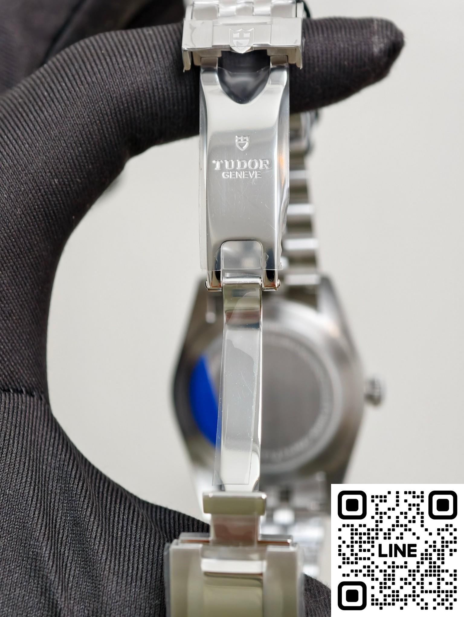 チューダー79000は、ポリッシュ仕上げとブラッシュ仕上げのステンレススチールケースを採用しています。37mmのケース径は1950年代のダイバーズウォッチのクラシックなプロポーションを再現し、11.2mmの薄さが快適な着け心地を実現します。ねじ込み式リューズにはチューダーローズのエンボス加工が施され、ステンレススチール製の逆回転防止ベゼルが組み合わされています。200m防水性能を備え、ヴィンテージスタイルを保ちながら、日常の作業や浅い潜水にも快適に対応し、実用性とスタイルを兼ね備えています。ステンレススチール製の5連ブレスレットはダブルポリッシュ仕上げで、繊細な手触りと快適な装着感を提供します。チューダーT-フィットバックルはマルチポジションの微調整が可能で、素手でもダイビングスーツとの組み合わせでも快適に着用できます。堅牢で耐久性の高いブレスレット構造は、毎日の通勤に特別なケアを必要としません。ケースと素材が調和し、耐久性と装着感を両立した統一感のあるスタイルを実現しています。
