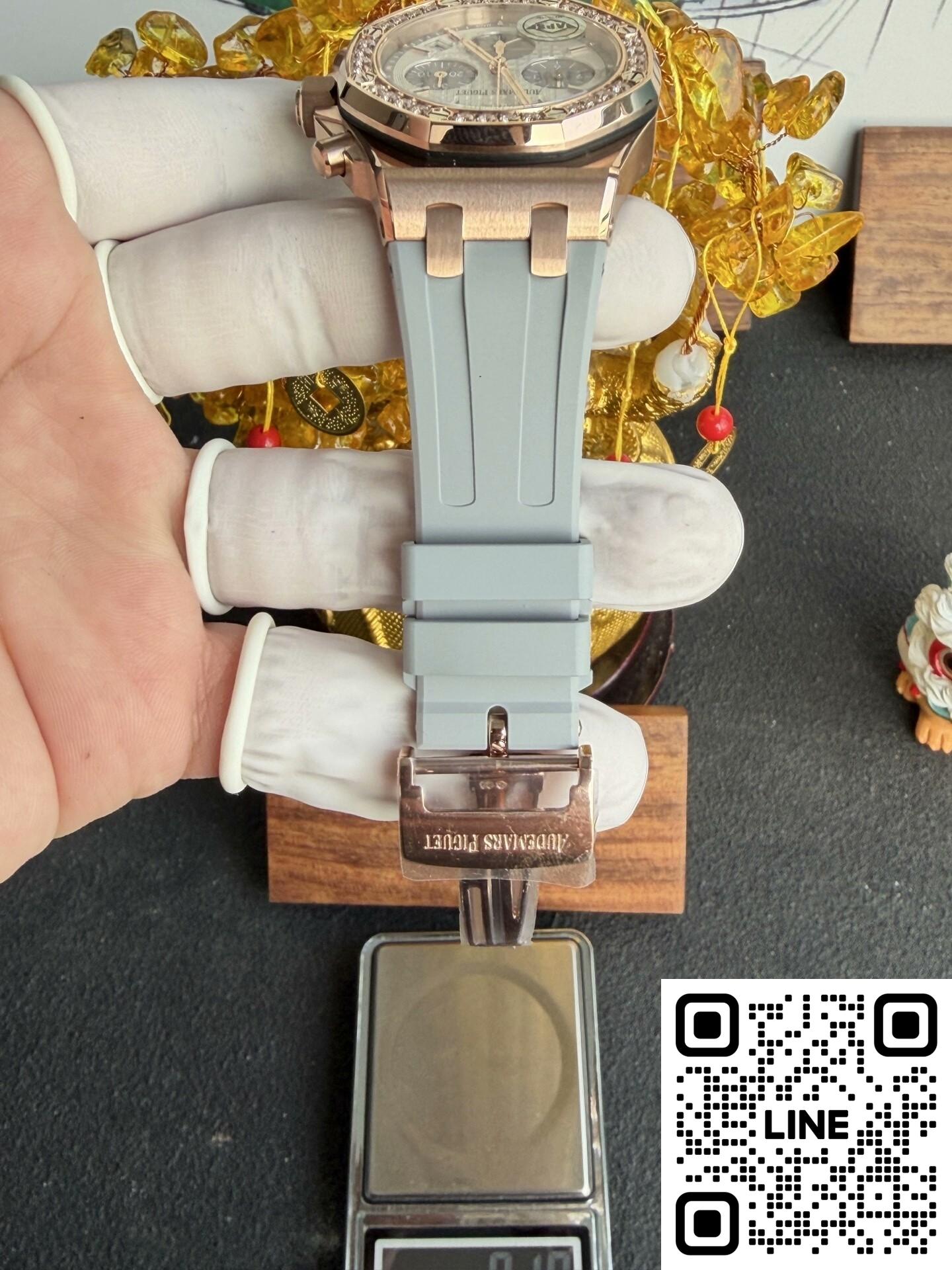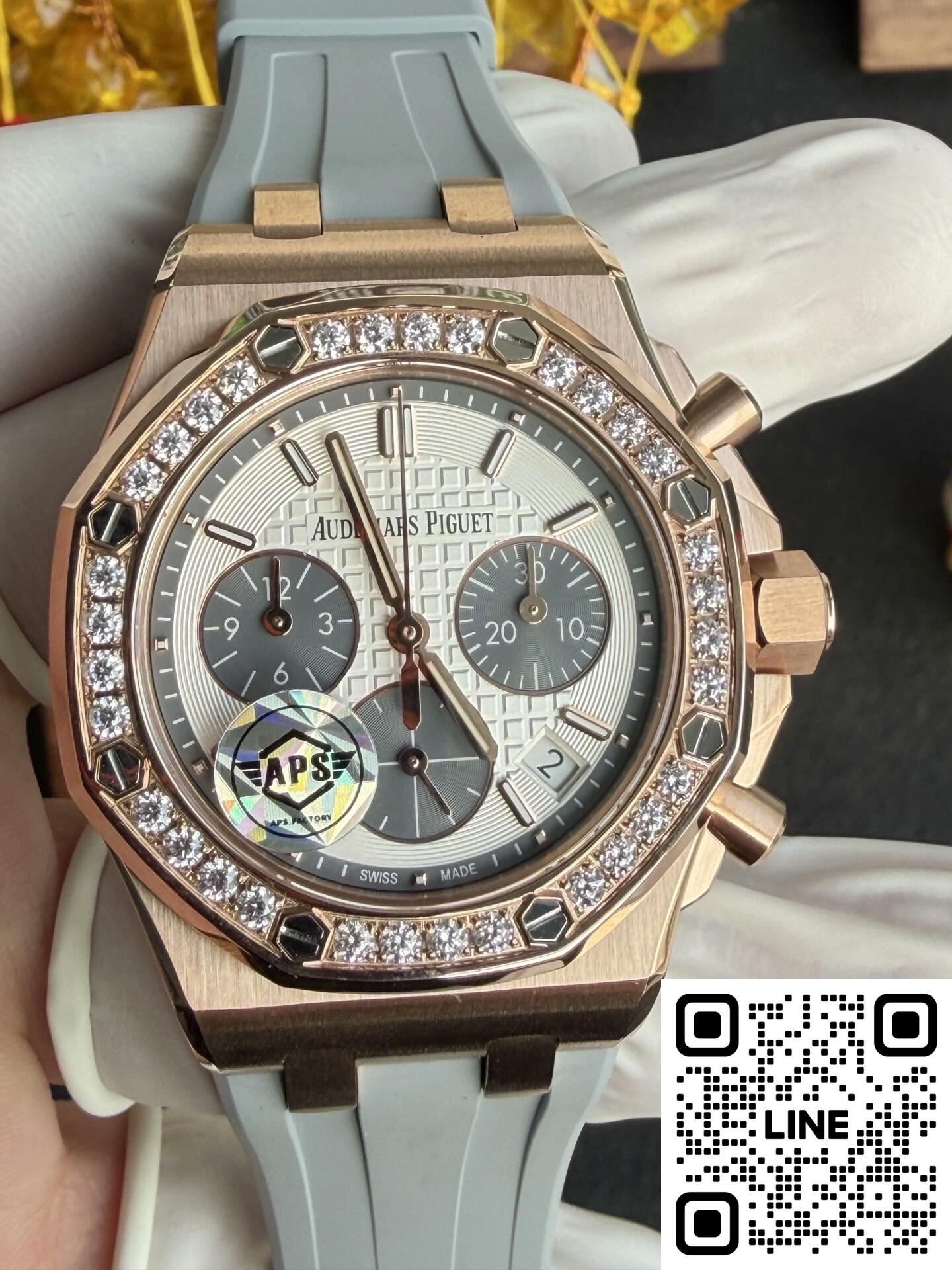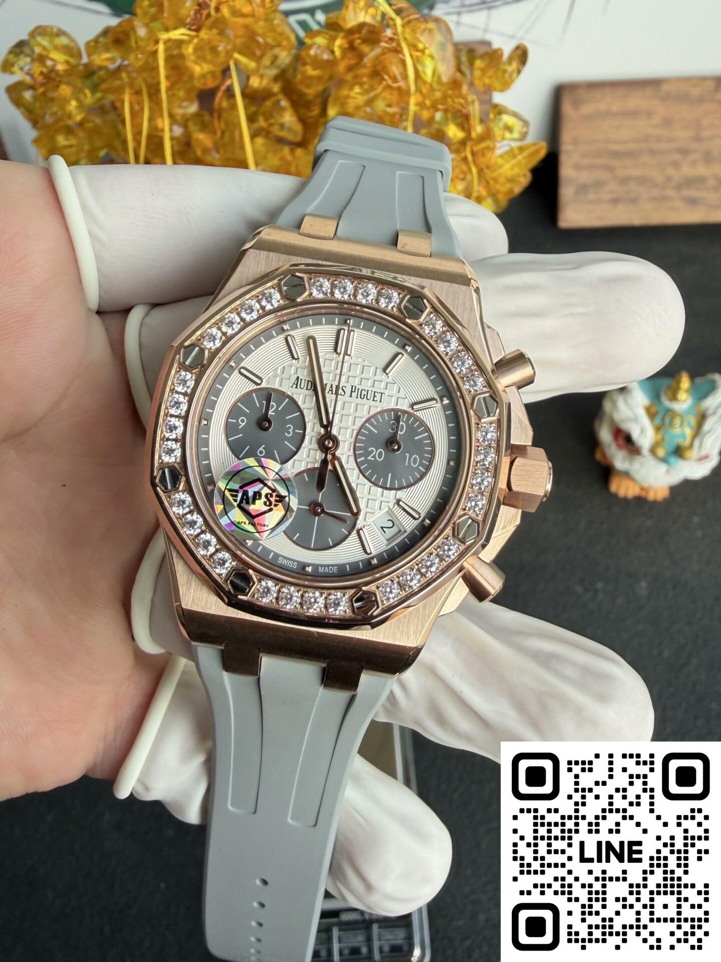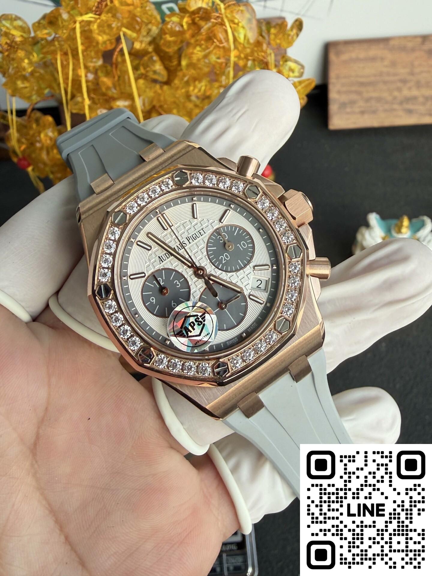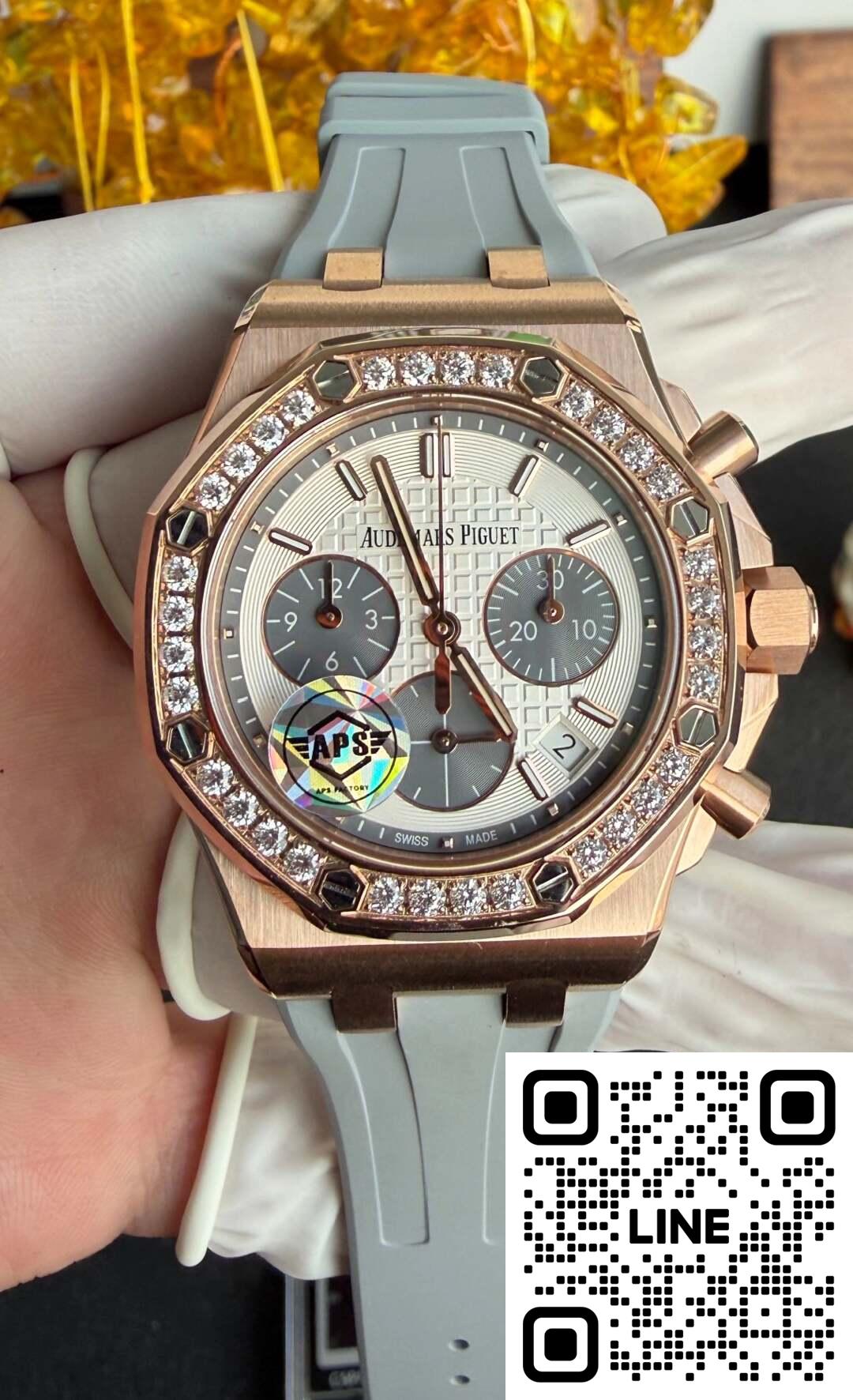 オーデマ ピゲ ロイヤルオーク オフショア レディ 37ミリ リファレンス26231OR.ZZ.D003CA.01は、ローズゴールドとダイヤモンドのエレガントな融合で、洗練されたスタイルを放ちます。ダイヤモンドをセッティングしたベゼルが、洗練された文字盤に映え、ひときわ目を引くデザインです。昼夜を問わず着用できるこの時計は、スポーティな美しさとラグジュアリーなタッチが見事に調和しています。快適なラバーストラップがその大胆な個性を引き立て、自信と現代的な女性らしさを象徴する存在となっています。